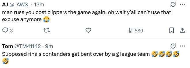 “伙計,你又讓快船隊輸?shù)袅吮荣?。哦,等等,你們不能再用這個借口了。”